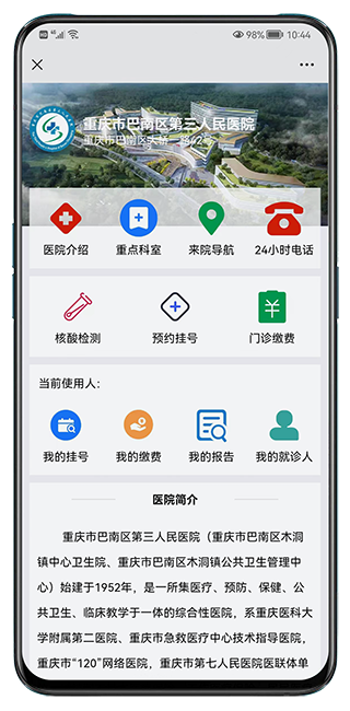 預(yù)約掛號(hào) + 門診/住院繳費(fèi) + 報(bào)告查詢